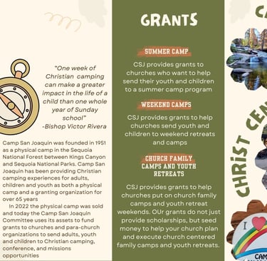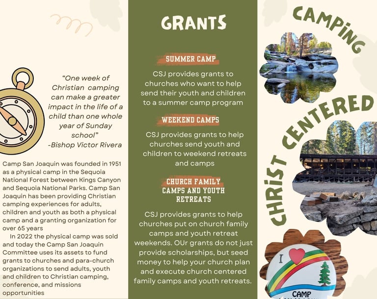 We work closely with Camp San Joaquin, a committee of the Diocese of San Joaquin, that seeks to help send youth to summer programs! Conferees, Counselors, and Clergy are welcome to apply for a grant!